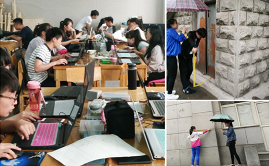 视频的制作过程是漫长和复杂的,需要他们拿尺子将每一栋教学楼都进行仔细的测量,建筑的长宽高,门窗、台阶、楼梯,甚至细微的边边角角也是不能放过。测量的两周时间内多为雨天,一旦出现数据错误或丢失的情况,负责的同学都第一时间抓起尺子、纸笔和雨伞冲入校园。另外,最困难的地方就在于漫游制作需要用到的软件,30位同学几乎都是零基础,为了克服这一技术障碍,他们在指导老师的引导下,一边做一边学习软件,在实践中熟悉和掌握软件技术,过程中无论遇到何种问题,学生们都迎难直上,收获颇多。45天内,除了上课,几乎都可以看到他们为之忙碌的身影。但是,他们觉得再苦再累,只是因为心中装着一个梦,这个梦是作为师大学子的一份荣耀,对校园的热爱,更是心里对毕业学子的深深不舍。