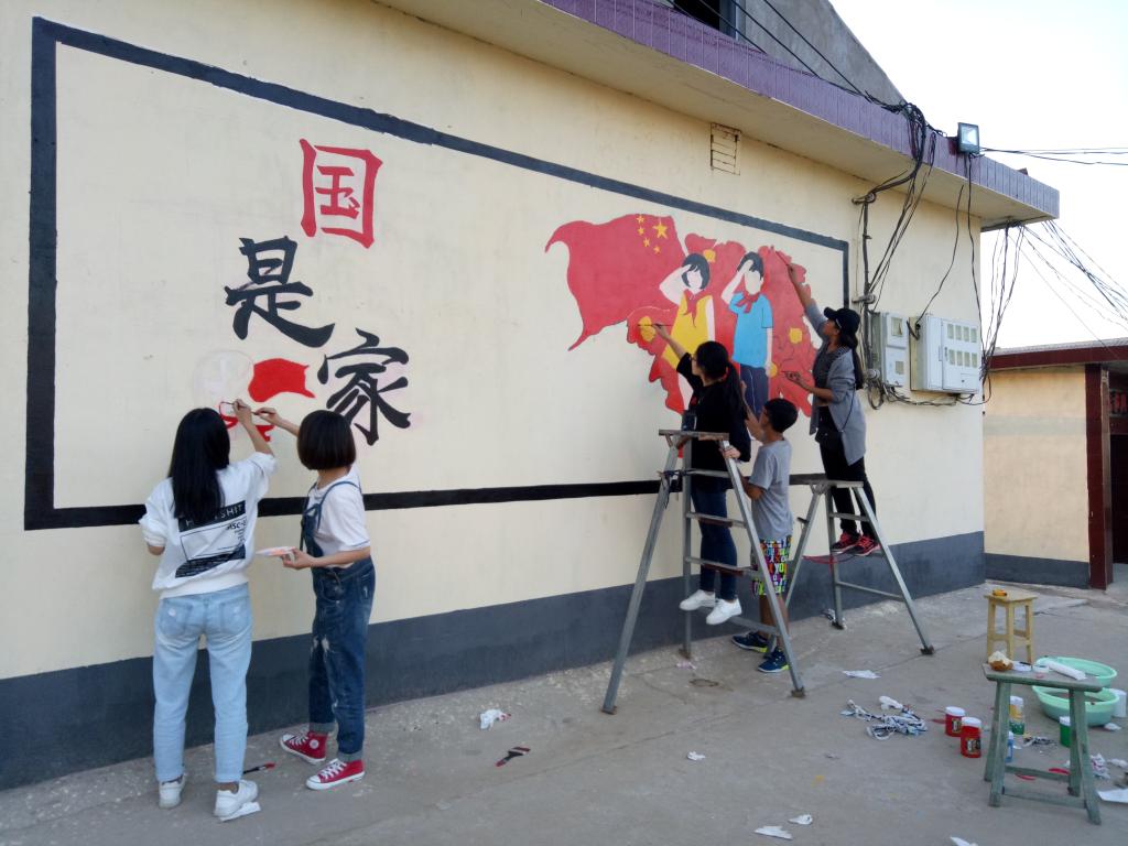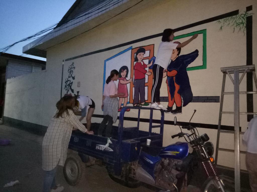 于9月23日组织50名志愿者,在齐增东老师的带领下前往吉县南村进行了为期两天的志愿实践服务-绘制文化墙。