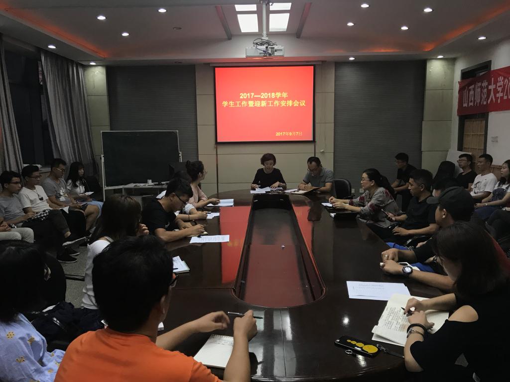 在四楼会议室召开了新学期学生工作暨迎新工作安排会议,组织部署新生入学报到、入学教育及新学期学生工作。院党委副书记庞丽娟、院团委副书记杜丰之、全体辅导员及学生干部参加了会议。会议由院团委副书记杜丰之主持。