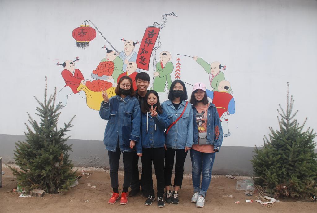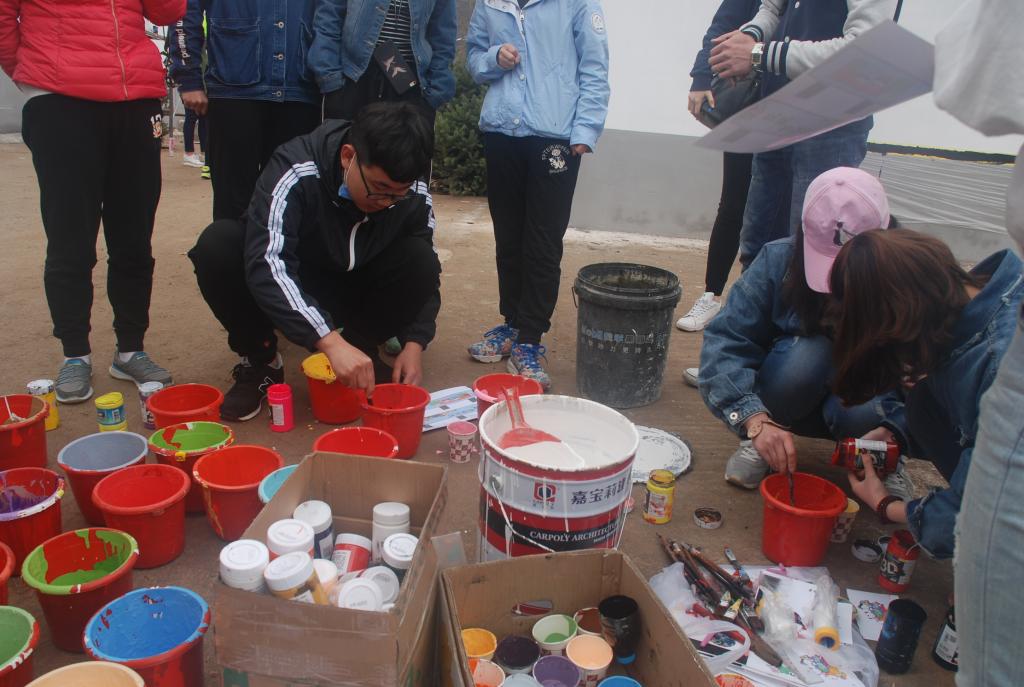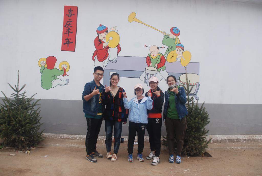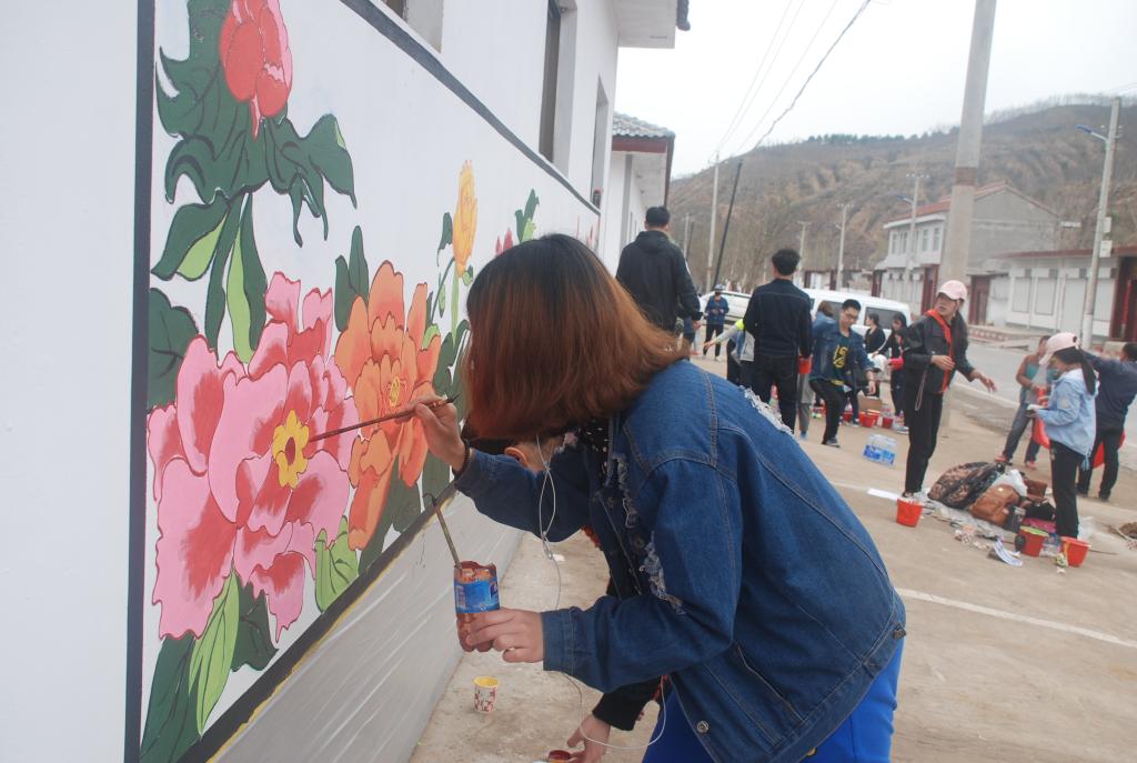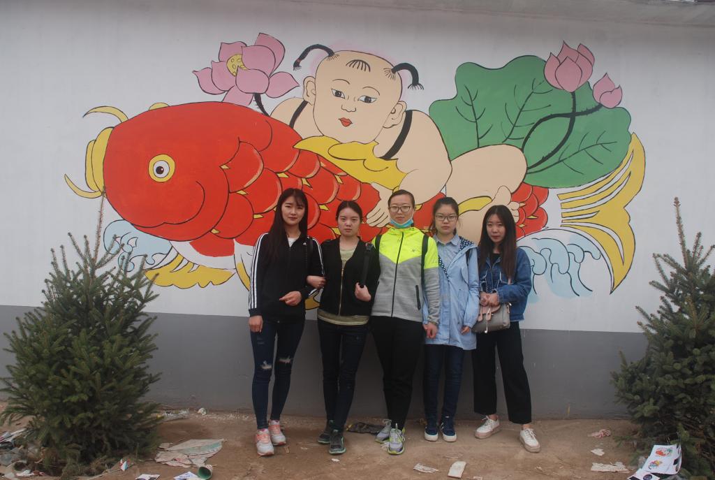 两天中,同学们用自己手中的画笔,凭借过硬的专业知识,按照指导教师张一平的方案设计,实地测量,认真构图,绘草图,调颜料,勾勒,上色,分组进行,井然有序。没有一个人叫苦,没有一个人喊累,没有一个人嫌脏,没有一个人说冷,脚手架上爬上爬下,高强度高标准高质量工作,硬是在短短的两天中把一幅幅精美的作品呈现在村民面前,“画的好”、“师大的学生就是水平高”、“好娃娃,能吃苦”,赞扬声一片。