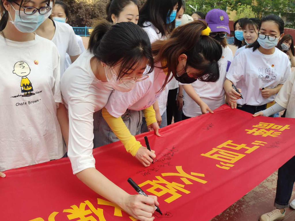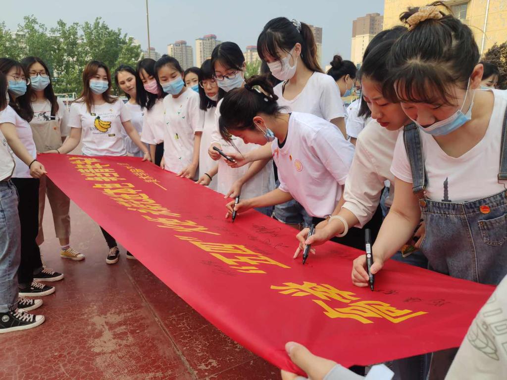 最后,团日活动在全体师生高举青春宣言条幅合影的欢乐氛围下圆满结束。