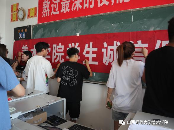 学生诚信倡议书,将诚信精神落实到学习生活中,树立当代大学生诚信品质。各班班长及团支书纷纷在条幅上签名确认,以表诚心。