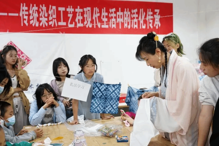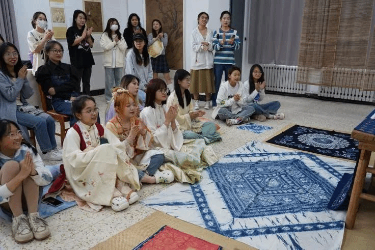 本次活动同学们通过亲自扎染手作,在深入了解了蓝染印染工艺的同时,放松了身心,感受了非遗的魅力,体验了美与文化的双重浸润。