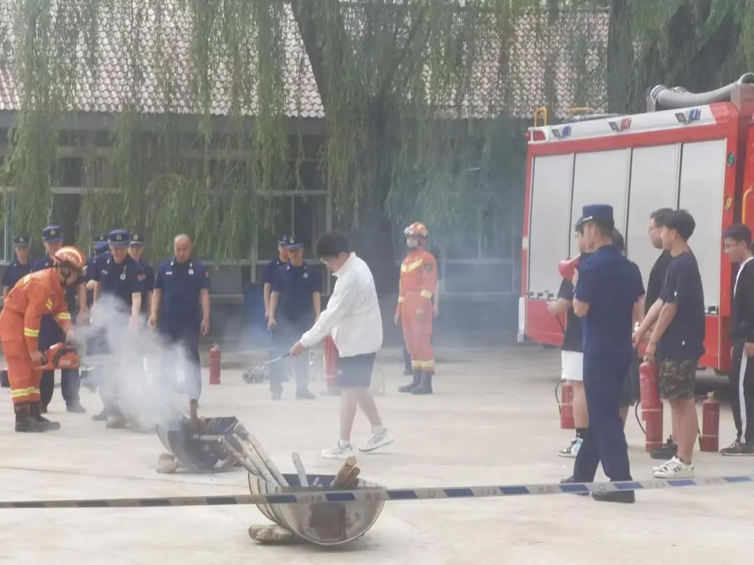 消防安全知识讲座结束后,所有师生在艺馨苑指定区域集合,开展模拟灭火消防安全演练。现场开展灭火器等专业工具的使用方法讲解,同学们亲手操作使用灭火器喷灭火源,更加系统直观地了解到消防安全知识,提升了消防意识与技能。