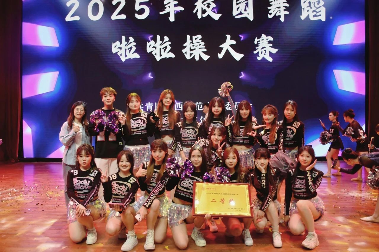 啦啦操队伍荣获大赛二等奖,为学院再添荣誉,展现了美院学子昂扬向上的青春风采。