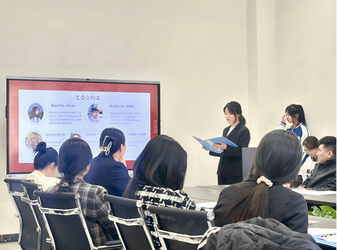 会议采用ppt汇报的形式,依照高年级至低年级顺序进行评选。在先进团支部评审环节,各支部通过图文影像生动呈现思想引领、专业实践与志愿服务成果,其中乡村振兴墙绘、非遗传承社区实践等活动深刻彰显了基层团组织活力。