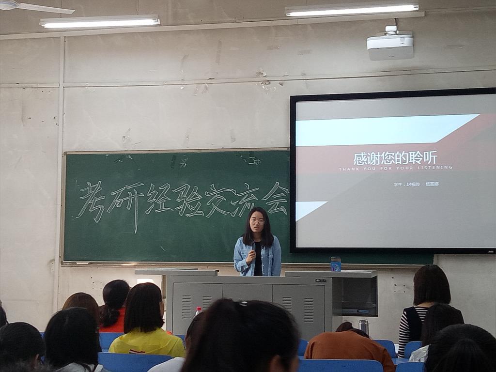 于4月26日下午在10106教室举行了考研经验交流会。此次交流会由考取陕西师范大学的李亚楠、西安交通大学的杨荧娜、保研我校的张庆国三位同学分享考研成功经验,并有同人动漫
