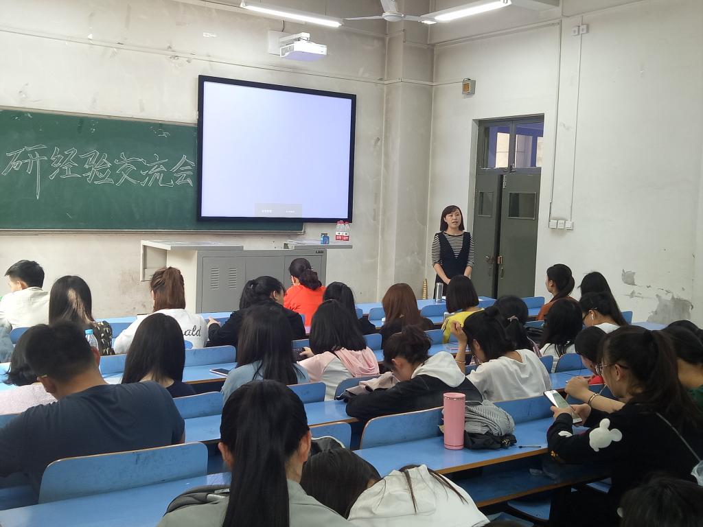 在读研究生王涛同学分享读研体会。院党委副书记庞丽娟、大四辅导员贾娟老师以及大二大三同学参加了交流会。